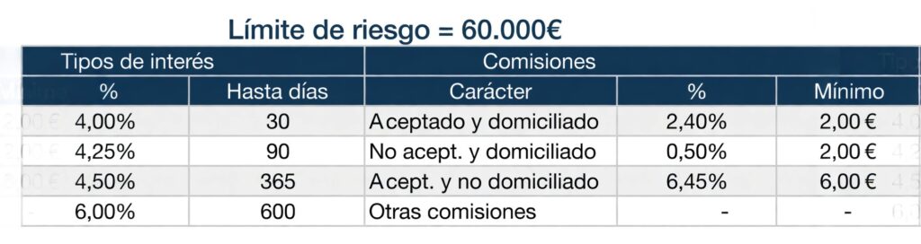 ¿Qué es el descuento? El vendedor recibirá esta «promesa de pago por escrito» del cliente y la llevará a un banco para que le anticipe el dinero. El banco le anticipará el dinero menos los intereses (d=tasa de interés %) que cobre, comisiones e impuestos. El importe neto que recibe el vendedor del banco se llama LÍQUIDO.