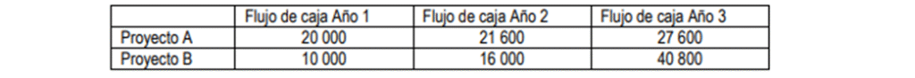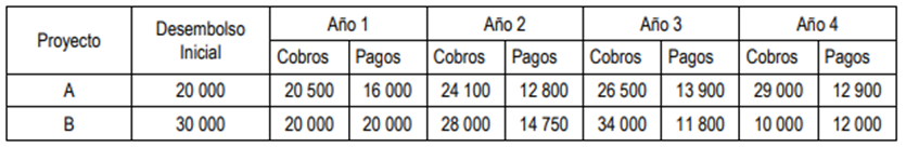 Ejercicio 2: Se está planteando dos opciones de inversión: Proyecto A; Proyecto B. En ambos casos el desembolso inicial asciende a 60.000 €. Determinar cúal es mejor si r = 15%.