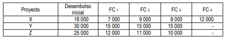 Proyecto A se rechaza; Proyecto B se acepta; Proyecto C se acepta. De entre los tres se elegiría el Proyecto C.